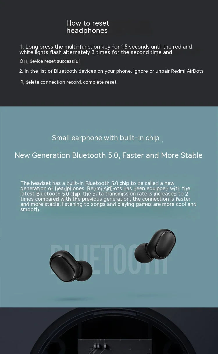 Original Xiaomi Redmi Airdots 2 Earbuds True Wireless Earphone Noise Reduction Headset With Mic Fone Bluetooth TWS Headphones